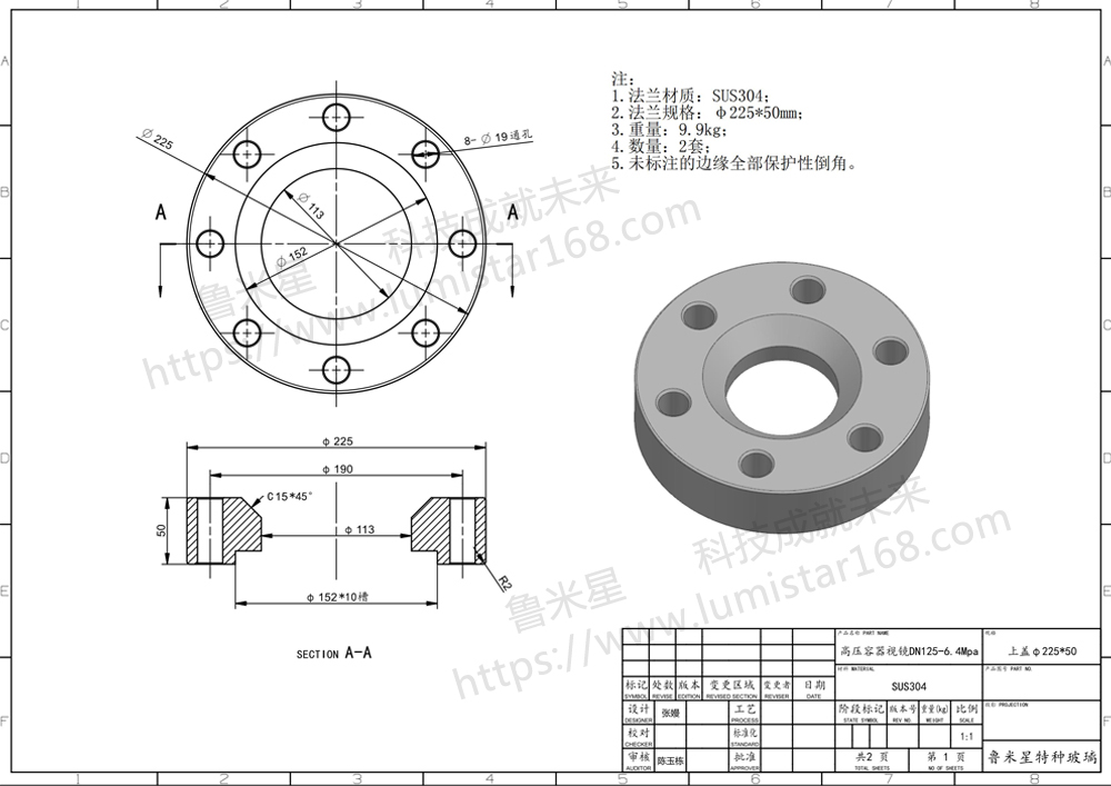 帶頸高壓容器視鏡DN125-6.4Mpa