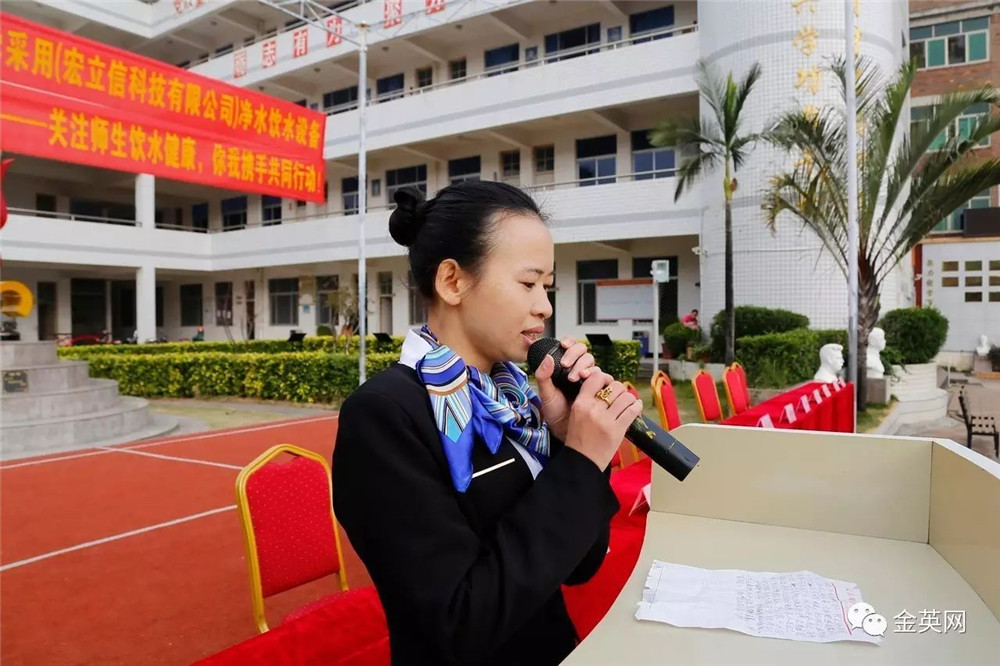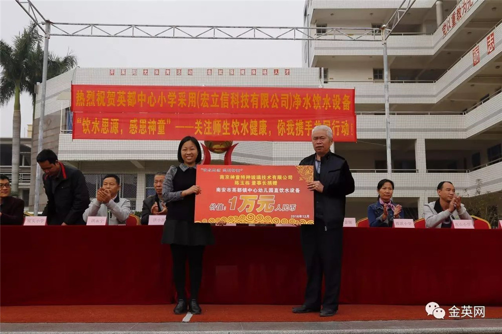 2016年10月,英都鎮中心小學書記洪新江老師參觀了其他高等級學校的飲水設備后心心念念想給全鎮的各所小學配上高性能飲水機,但受限于學校沒有財力支持,每次都只能望而興嘆!魯米星董事長陳玉棟先生獲悉情況后,通過調查得知廣東宏立信凈水器在泉州有良好的市場口碑和信譽,溝通后立刻委派南安市廣東宏立信凈水器總經銷商銷售經理陳麗萍女士到學校了解情況,隨后陳總果斷拿出10萬元給全鎮7所完全小學配上高性能飲水機,從根本上解決了小學生亂買飲料亂喝飲料的重大問題!校園飲水衛生問題也引起了南安市人大主席的重視,指示各學校要想辦法落實中小學生飲水衛生工程。